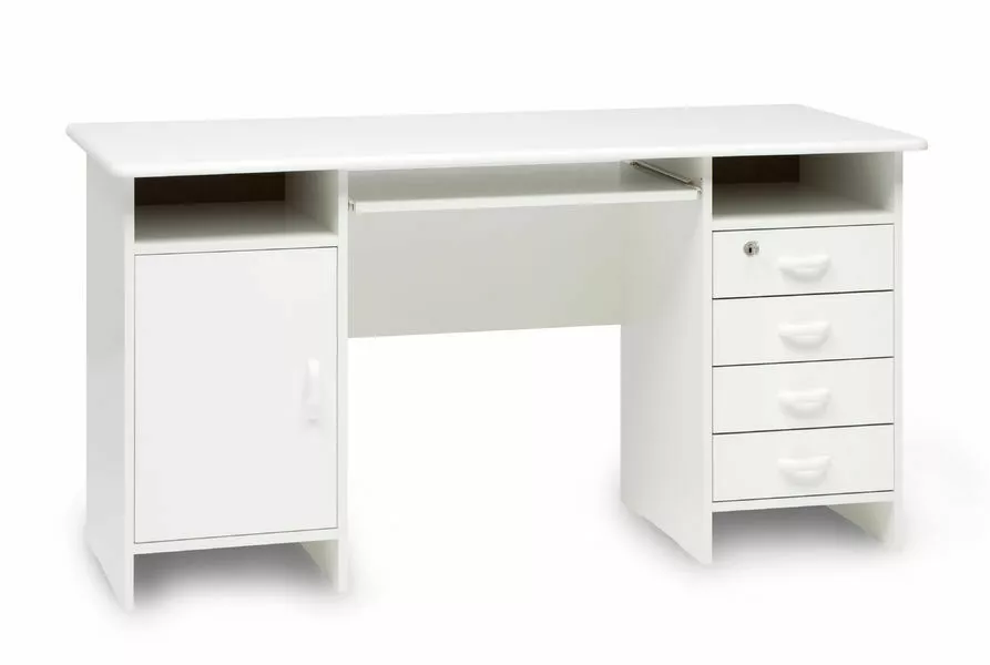 Kotimainen, Leo Matti Ojala Oy.n valmistama laadukas Fixor kirjoituspöytä neljällä vetolaatikolla sekä umpiovikaapilla. Umpiovikaapissa on 1 kpl korkeussäädettäviä hyllyjä ja ylin vetolaatikko on lukittava. Fixor-kirjoituspöydän runko-osat ja kansi ovat kalustelevyä sekä maalattua mdf-levyä.
