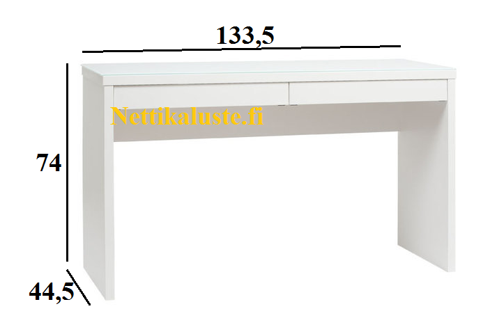 Pöydän runkoväri on valkoinen ja kansivärin voit valita kahdesta eri vaihtoehdosta: valkoinen tai hopea jalava.