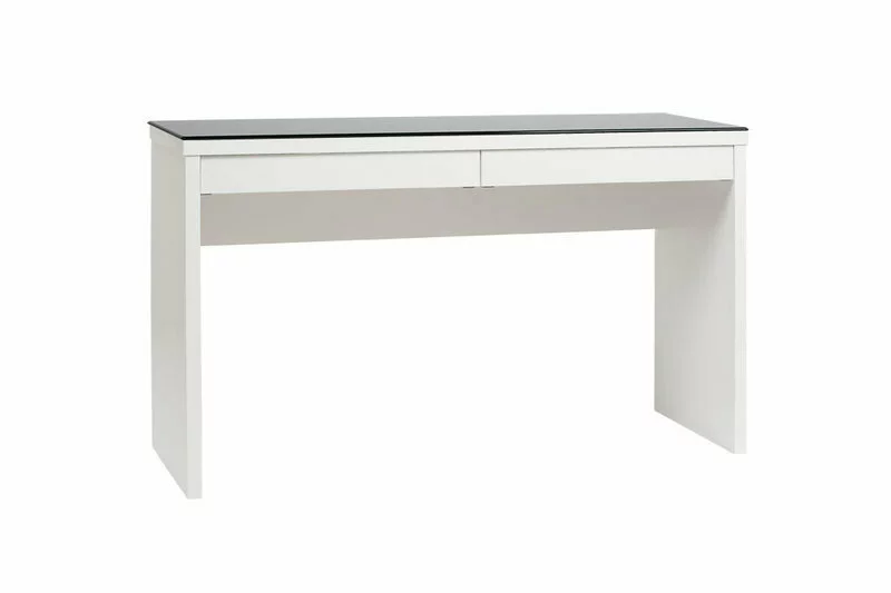 Lisävarusteena pöytään on saatavana paksu lasikansi valkoisella tai mustalla lasilla sekä kätevä pyörillä varustettu lisälaatikosto.