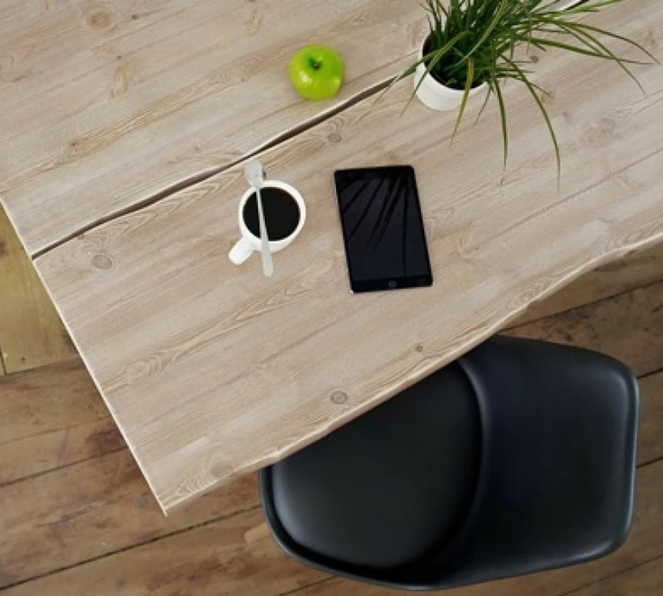 Suosittu Lana-ruokapöytä harjatulla massiivipuukannella. Pöytään voit yhdistellä monenlaisia tuoleja ja rakentaa itsesi ja kotisi näköisen kokonaisuuden.