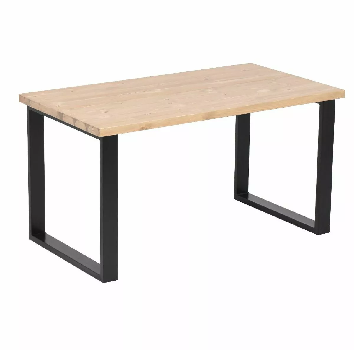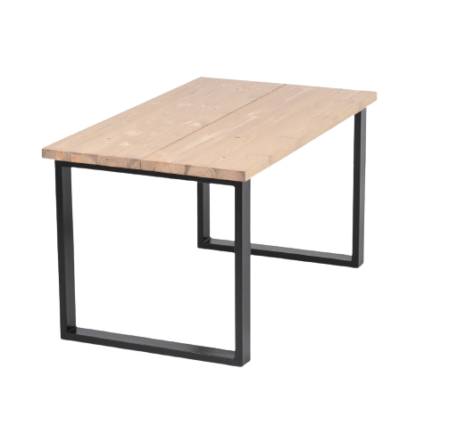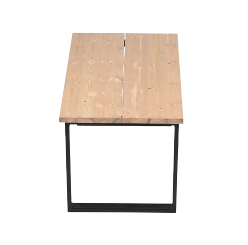 Seela ruokapöytä näyttävällä ja tukevalla lankkukannella. Kannen lankut on nättävästi harjattu, jotta pinnasta on saatu kauniin rustiikkinen. Kannessa on kauniisti näkyvissä puun syyt ja kuviointi.