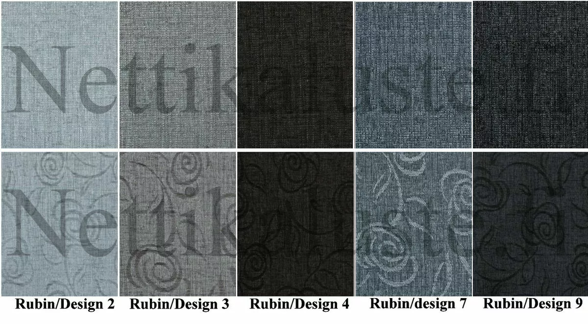 1. Rubin/Design. Valittavanasi on joko yksiväriset istuin- ja selkätyynyt( Rubin) tai kuviolliset tyynyt(Rubin/design)