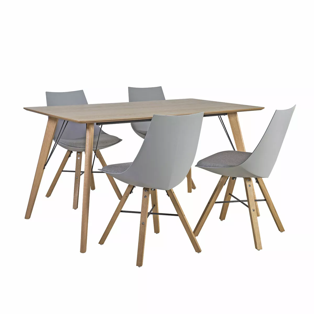 Trendikäs Eliisa ruokaryhmä näyttävillä harmailla ABS-muovituoleilla.