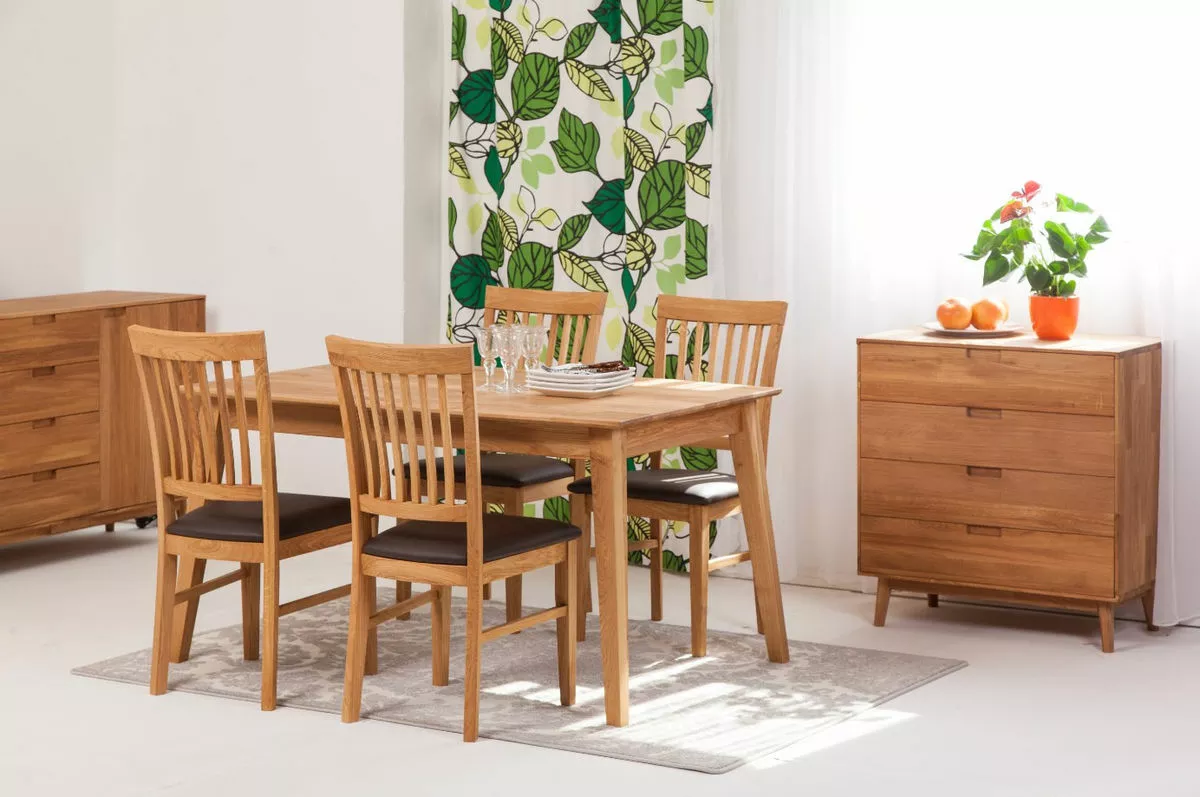 - Pöytä ja tuolit valmistettu massiivitammesta
