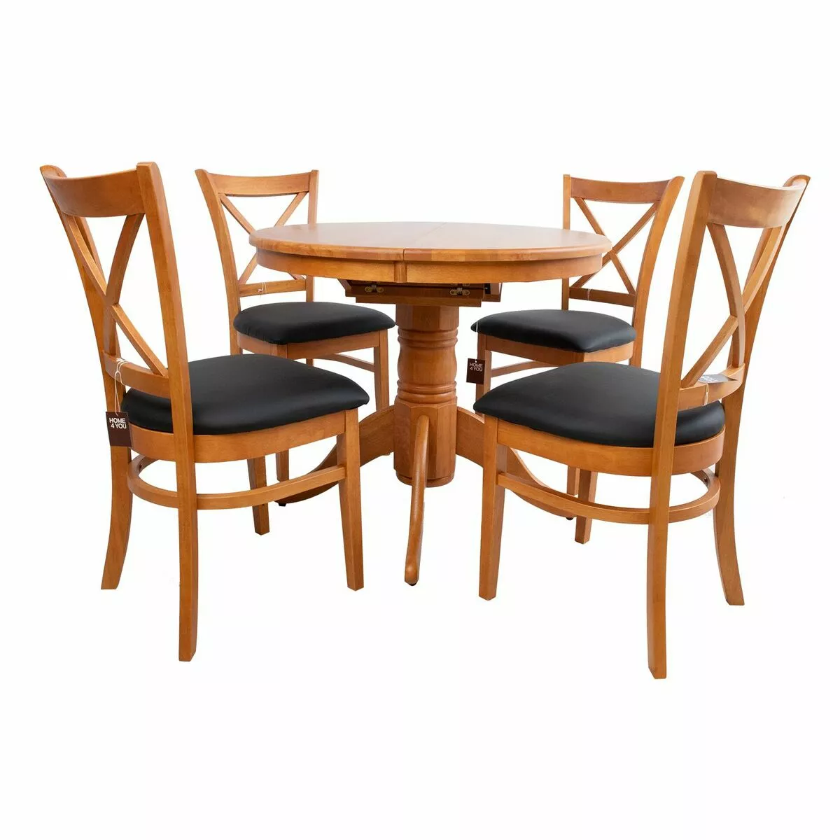 Nico ruokailuryhmä sisältää jatkettavan pyöreän pöydän sekä 4 kpl tuoleja. Pöydässä on kätevä jatkopala.