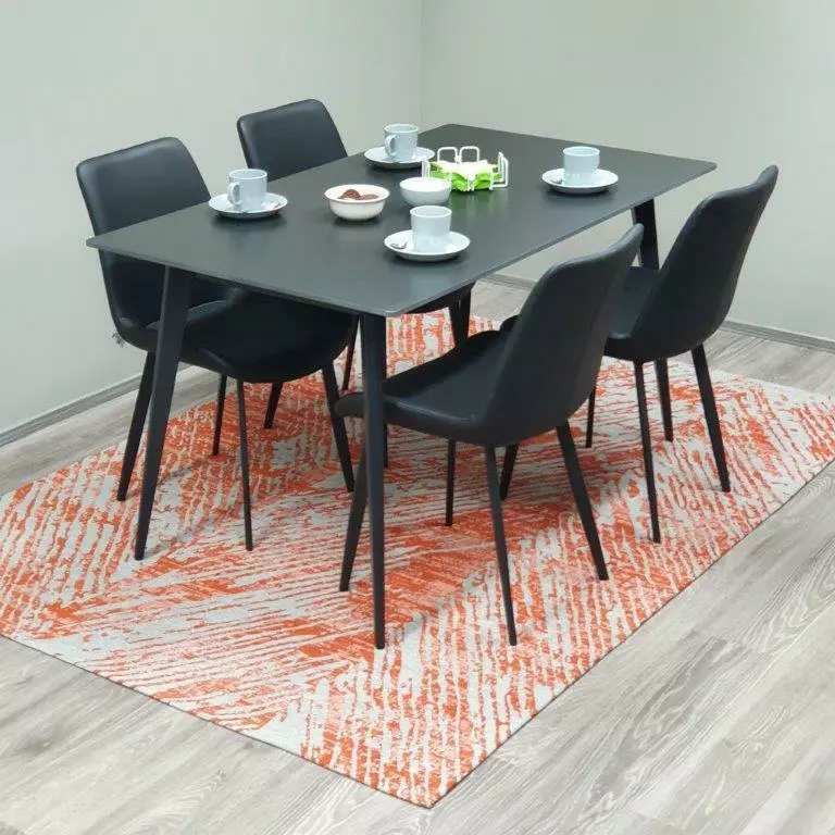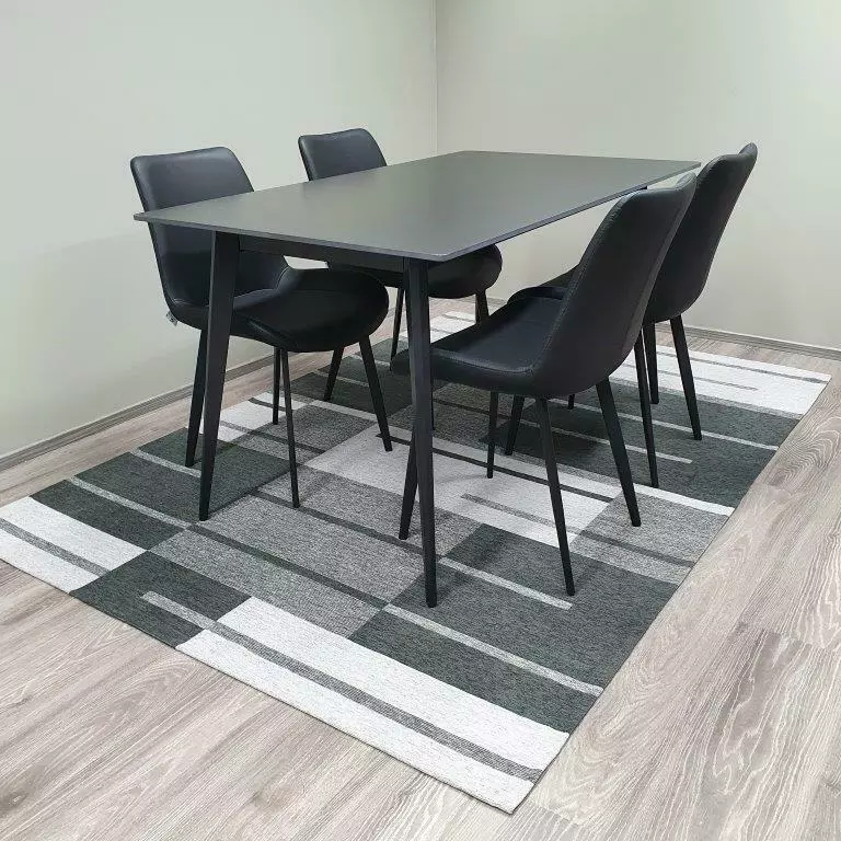 Stone ruokailuryhmä sisältää tyylikkään kivikantisen pöydän sekä 4 kpl PU-nahkaverhoiltuja tuoleja. Pöydän kansi on aitoa kiveä, joten se kestää erinomaisesti kulutusta ja sen päälle voidaan laskea esimerkiksi kuuma kattila. Metallirunko ja -jalat tekevät pöydästä laadukkaan ja tukevan.