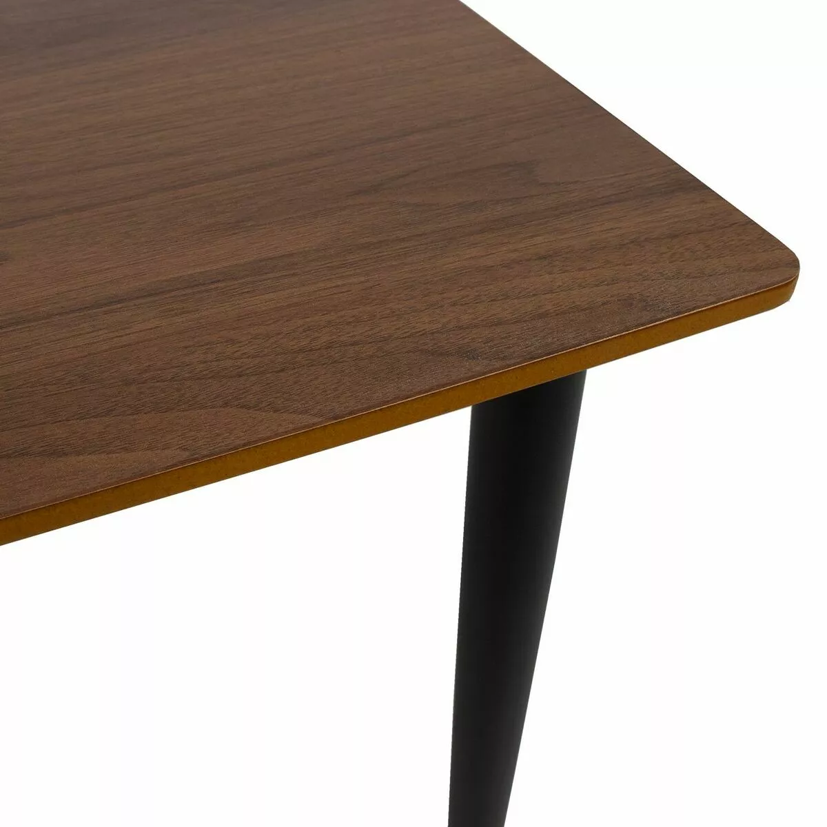 Tyylikäs Rio ruokapöytä siroilla metallijaloilla ja pähkinän värisellä kansiosalla.