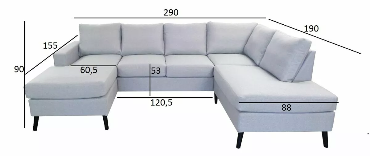 Korkeajalkainen U-kulmasohva