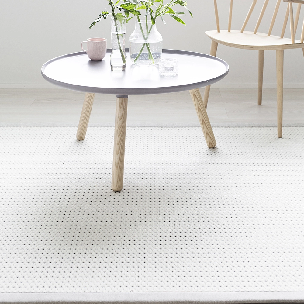 Valkea-maton pinta on tiiviiksi kudottua, ylellistä villaa, joka tuo sisustukseen lämpöä ja pehmeyttä. Pohjassa on liukumaton EVAPOLYTEX, joka tekee matosta ryhdikkään. Pohjausmateriaali sopii kaikille lattiapinnpolle ja myös lattialämmitteisiin tiloihin. Pohja ei jätä jälkiä lattiaan ja on hajuton ja kierrätettävä.