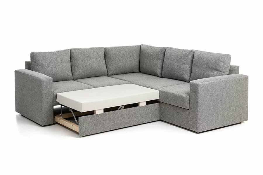 Moderni ja tyylikäs Roma vuodekulmasohva tarjoaa reilusti istumatilaa isommallekin perheelle. Sohva muuntuu 130×190 cm vuoteeksi hetkessä.
