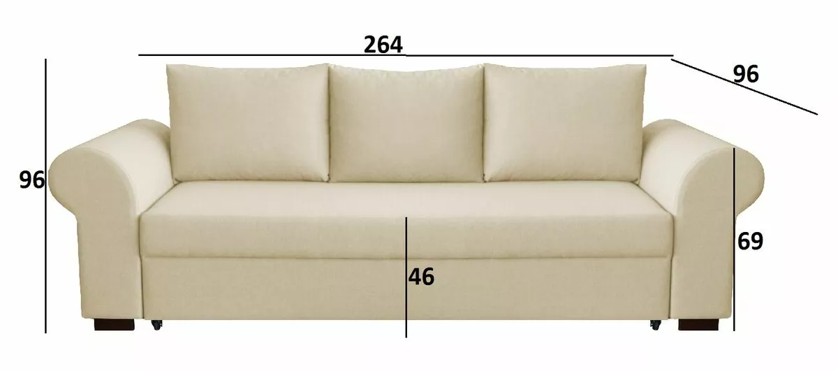 Isokokoinen Laura-vuodesohva isolla vuoteella ja tilavalla vuodevaatelaatikolla.