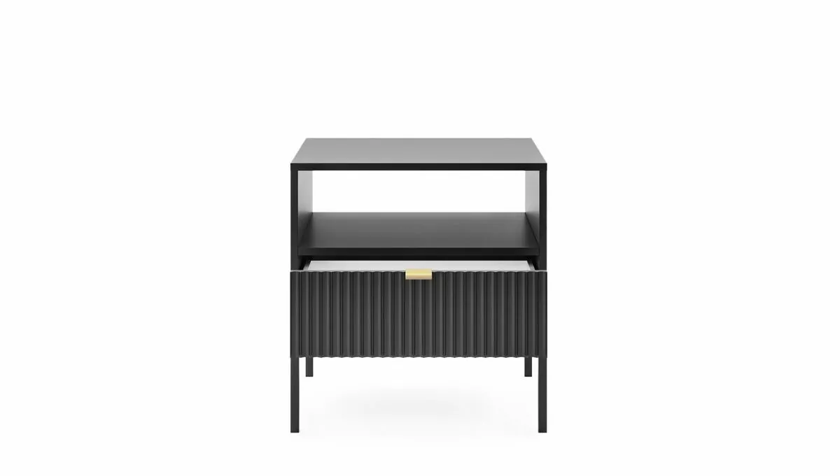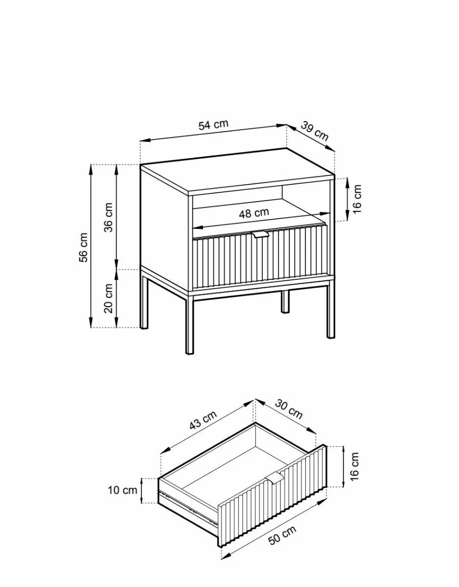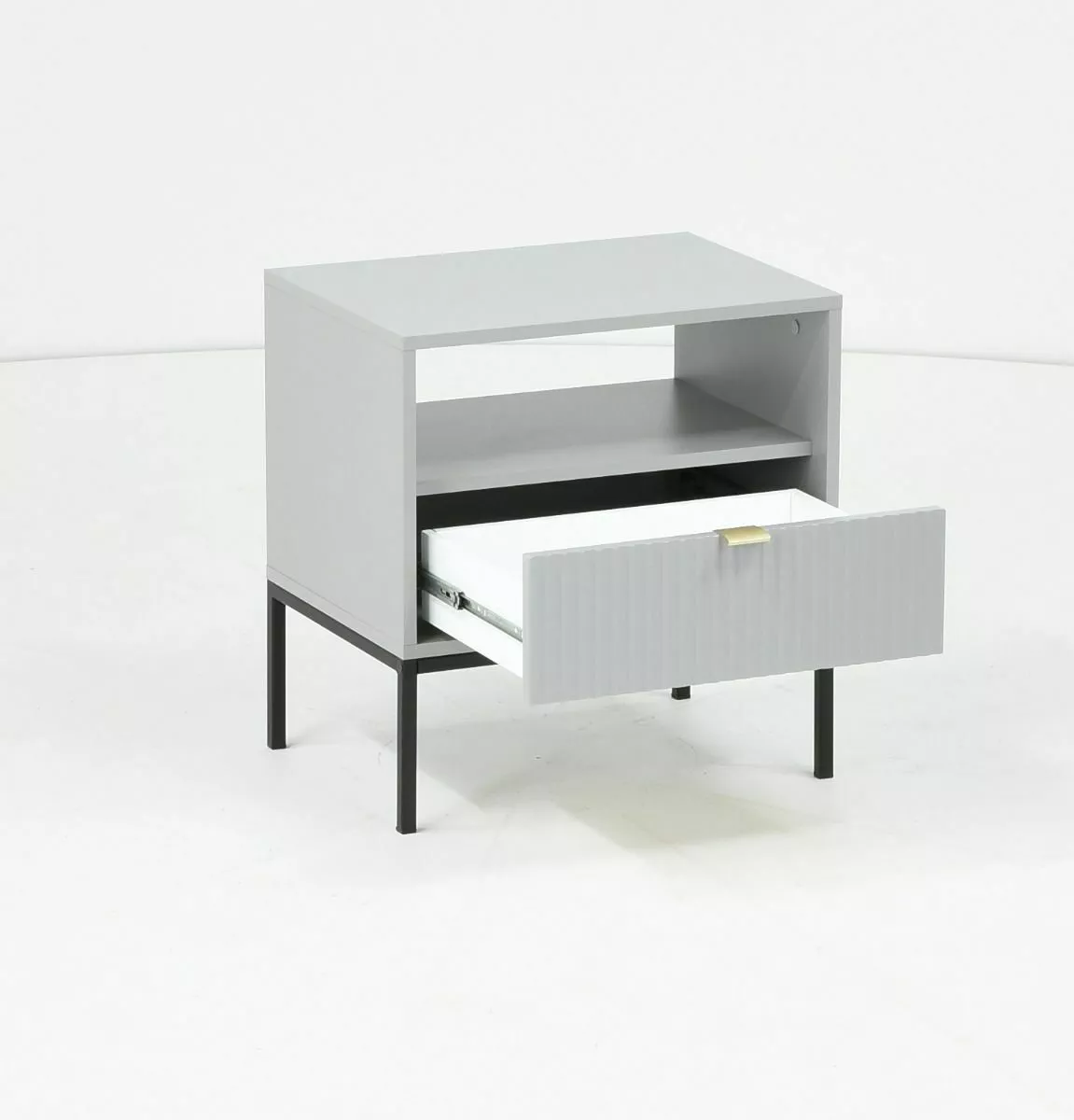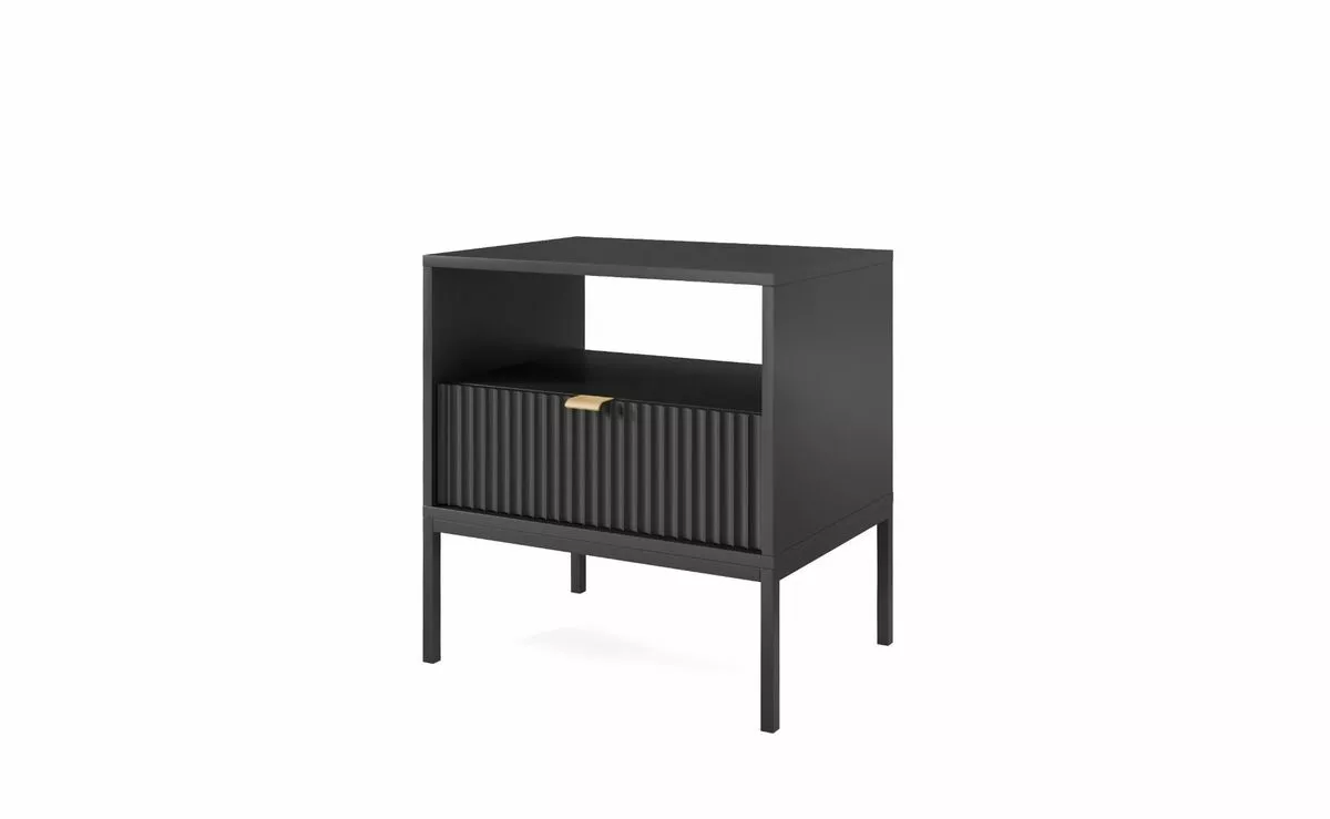 Tyylikkässä ja sirossa Latte yöpöydässä on yksi vetolaatikko ja tilava avotaso. Etusarjoissa olevat urat antavat kauniin, yksilöllisen ilmeen. Saatavana mustana tai greigenä.