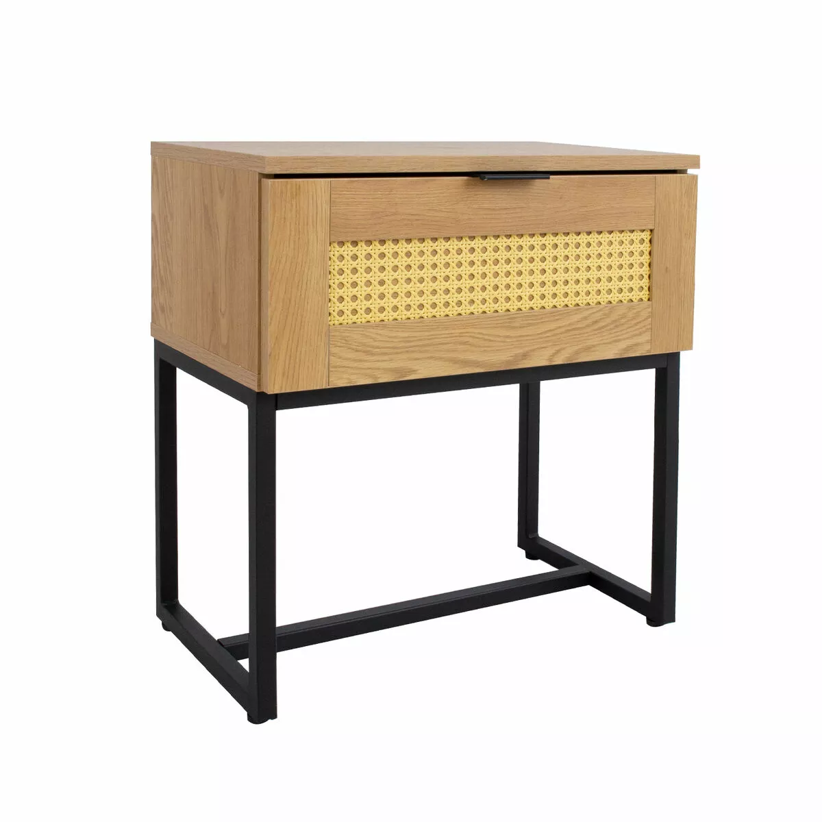 Marino tuotesarjan yöpöytä tyylikkäällä rottinkikuvioinnilla.