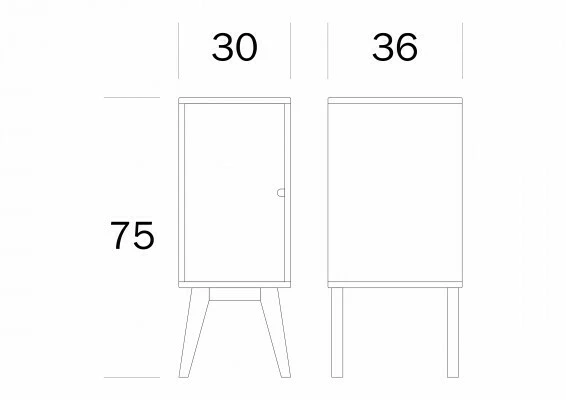 Kevyt ja kaunis, kotimainen kokokoivuinen yöpöytä ovikaapilla.